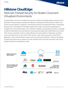 Hillstone CloudEdge offers the advanced security and flexibility required by highly dynamic business applications and operations in an NFV environment. It provides the compatibility, elasticity, high performance, and open API that are all crucial in an NFV security solution.