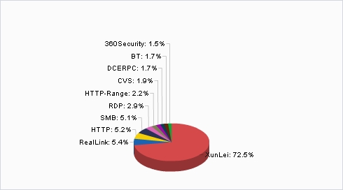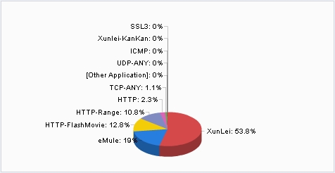 - Click the Application tab. In the bandwidth statistics page, you can see the application that occupies the most bandwidth is XunLei, as shown by the pie chart below: